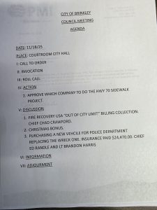 If anyone needs to be on the Agenda all request should be in Mayor office by 12:00 p.m (noon) the Thursday before the meeting.